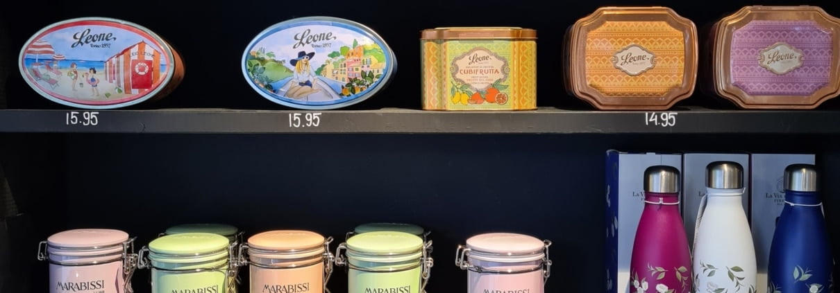 De heerlijkste Italiaanse koekjes, snoepjes en chocolade vind je hier! Mooi verpakt in vrolijke blikjes of kleurrijke verpakking, . . .een cadeautje op zich.